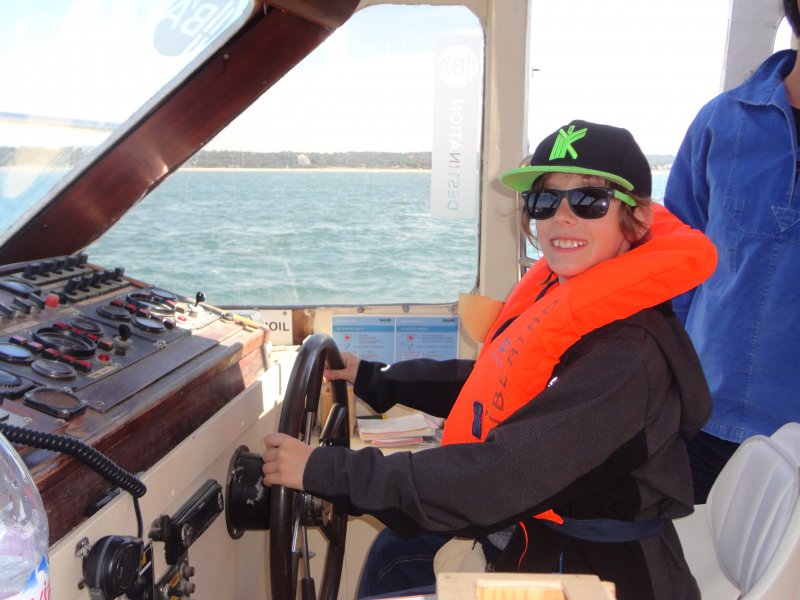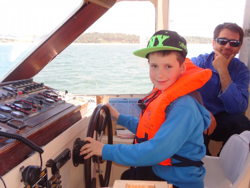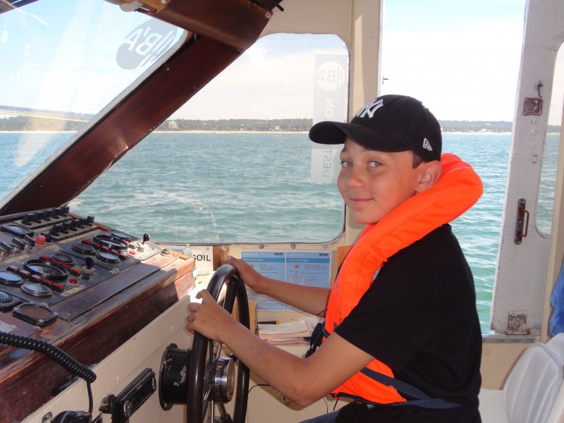 Chacun notre tour, nous avons conduit le bateau. Le bateau s’appelait “Libertad”.