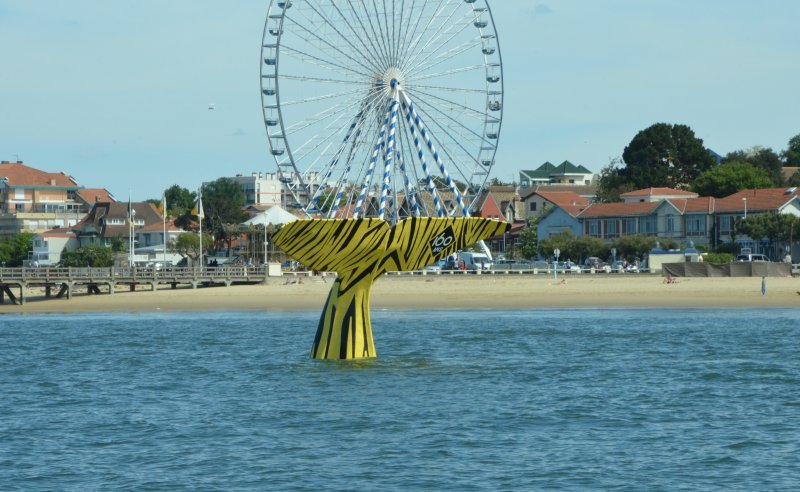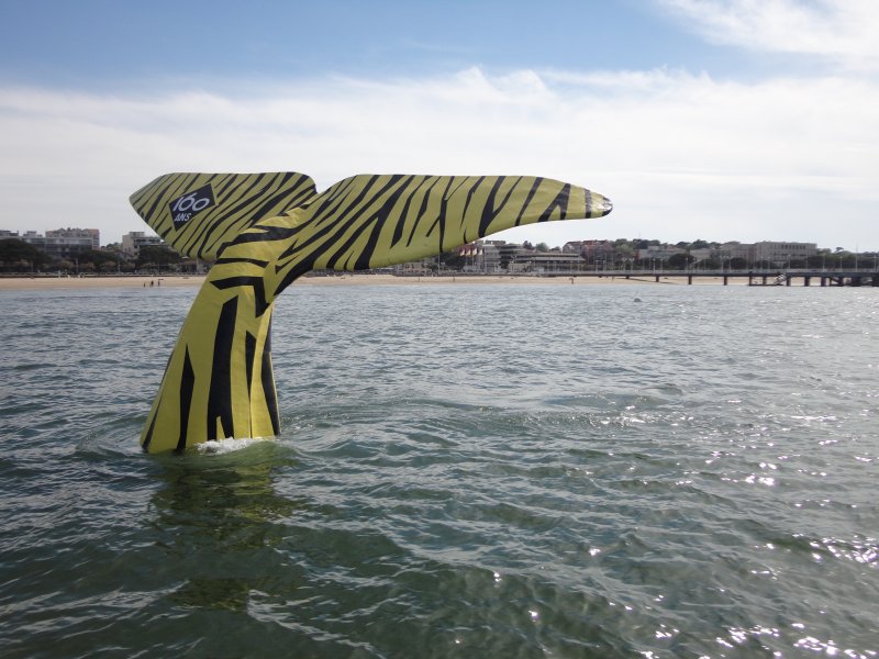 Nous avons vu une queue de baleine, une fausse ! C’est une queue de baleine en plastique.